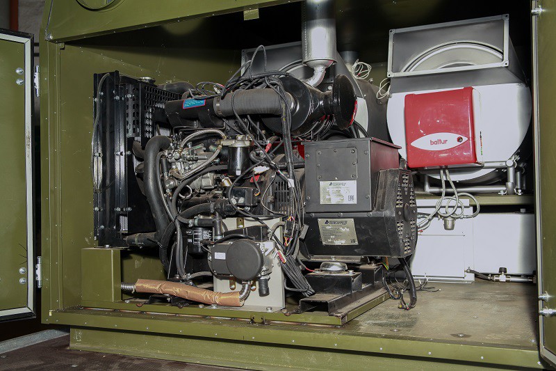 MPVU-500 “YEMELYA” may operate when powered both from the built-in diesel generator and from an external 380 V supply mains. It is equipped with two heat exchangers that operate both in parallel and individually. Two-stage 260 kW Baltur burners. The burners use diesel fuel.